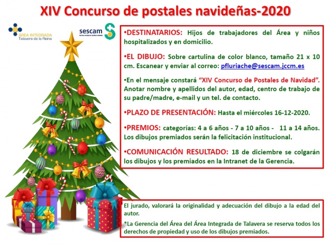 Concurso de Postales de Navidad para niños ingresados e hijos de profesionales. Consulta las bases.Fecha máxima de envío de trabajos el 16 de diciembre.